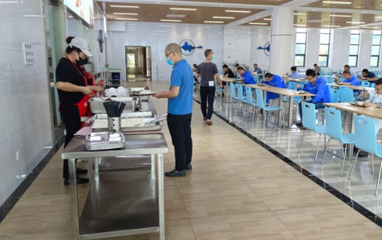 首批返廠員工以生產(chǎn)一線人員為主,閉環(huán)生產(chǎn)現(xiàn)場實行全封閉管理,員工全程佩戴口罩,食宿、工作不出廠區(qū),集中組織每日核酸檢測和健康監(jiān)測。后勤保障組迅速組織宿舍調(diào)整和消殺,騰出員工宿舍30余間、床位60多個,準(zhǔn)備了至少一個月用量的口罩、手套、消毒劑等防疫物資,聯(lián)系政府指定保供經(jīng)銷商確認了食材采購需求,全力保障返廠員工生活和防疫需求。