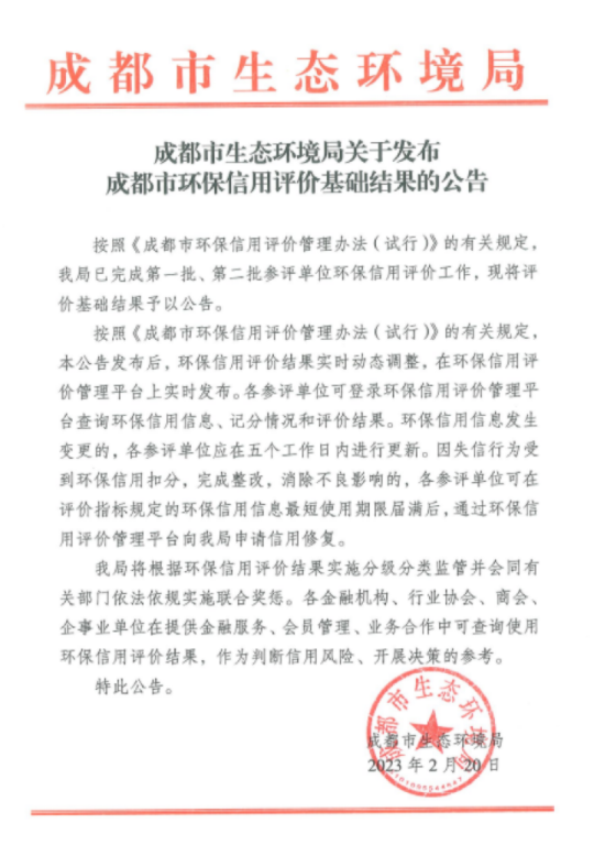 下一步,成都市生態(tài)環(huán)境局將根據(jù)環(huán)保信用評(píng)價(jià)結(jié)果實(shí)施分級(jí)分類(lèi)監(jiān)管并會(huì)同有關(guān)部門(mén)依法依規(guī)實(shí)施聯(lián)合獎(jiǎng)懲,公司也將在2022年環(huán)保工作基礎(chǔ)上繼續(xù)完善環(huán)境保護(hù)管理體系,不斷優(yōu)化公司生產(chǎn)工藝與設(shè)備設(shè)施,不斷提高公司環(huán)境保護(hù)管理水平。