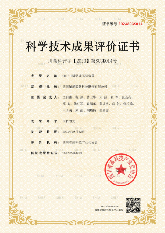 日前,由四川蜀道裝備科技股份有限公司自主研發(fā)的SDHE-I撬裝式提氦裝置成功通過科學(xué)技術(shù)成果鑒定。鑒定評價為該成果技術(shù)成熟,社會效益和經(jīng)濟效益前景良好,總體技術(shù)水平達到國內(nèi)領(lǐng)先,裝置單位能耗、液氮消耗等指標達到了國際先進水平。
