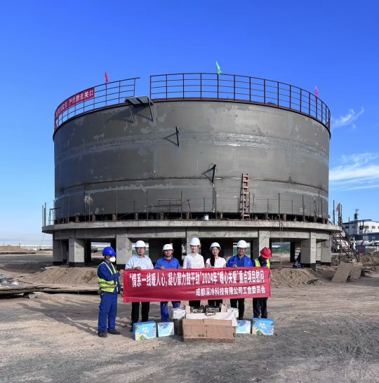 本次走訪的山西圣鑫焦化20000m3LNG儲(chǔ)罐項(xiàng)目、山西閩光新能源儲(chǔ)罐項(xiàng)目、新疆新和天液化天然氣等項(xiàng)目為科技公司2024年重點(diǎn)項(xiàng)目,建成后將對提升當(dāng)?shù)啬茉幢9┠芰Γ瑑?yōu)化能源產(chǎn)業(yè)結(jié)構(gòu),助力實(shí)現(xiàn)“碳達(dá)峰、碳中和”具有重大意義。公司項(xiàng)目經(jīng)理、售后調(diào)試人員等長期奮戰(zhàn)在艱苦偏遠(yuǎn)的項(xiàng)目一線,不畏艱難、勇挑重?fù)?dān),全力以赴確保項(xiàng)目能夠高質(zhì)高效完成。此次慰問重點(diǎn)關(guān)注了他們的工作和生活情況,并為他們送去感謝信與“暖心關(guān)愛”物資。