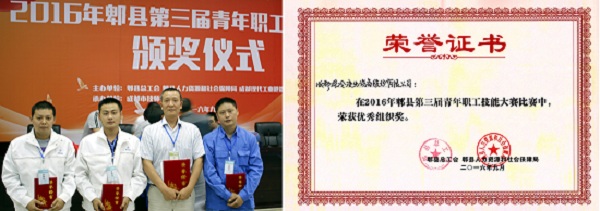 我司在由郫縣總工會(huì)、郫縣人力資源和社會(huì)保障局、成都現(xiàn)代工業(yè)港聯(lián)合舉辦的“2016年郫縣第三屆青年職工技能大賽”中取得優(yōu)異成績(jī),所有參賽職工均載譽(yù)而歸,分別獲得焊接項(xiàng)目第一名、第三名、數(shù)控車床第三名,公司在此次比賽中榮獲“優(yōu)秀組織獎(jiǎng)”。