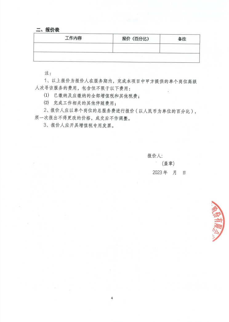 高級(jí)人才尋訪服務(wù)采購詢價(jià)函